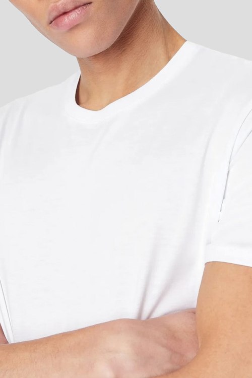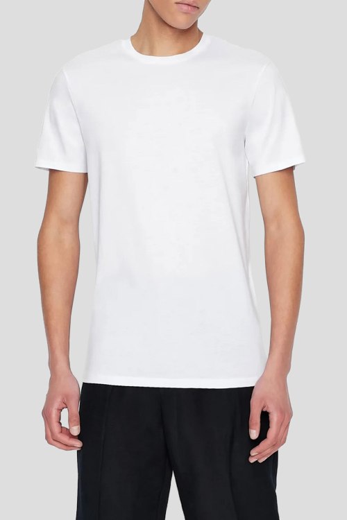 Детали: Мужская белая футболка из хлопка от Armani Exchange (Армани Эксчендж). Классическая длина, круглый вырез горловины, короткие рукава, ровный низ изделия