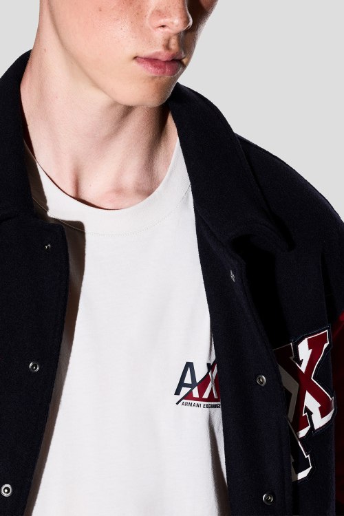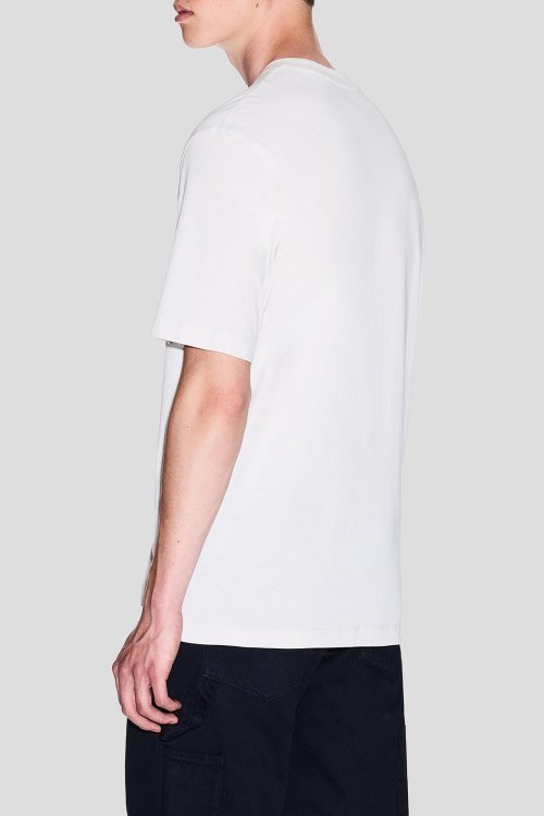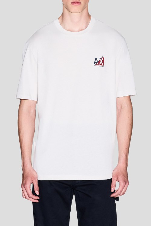 Детали: Мужская белая хлопковая футболка от Armani Exchange (Армани Эксчендж). Логотип на груди, круглый вырез горловины, короткий рукав, классическая длина