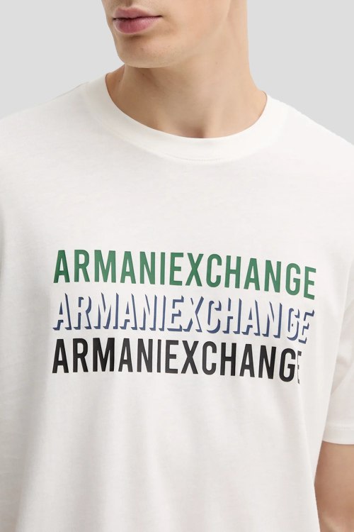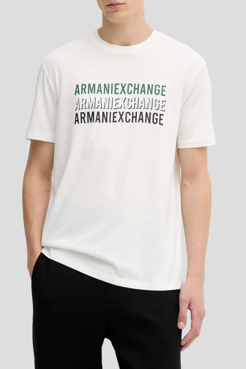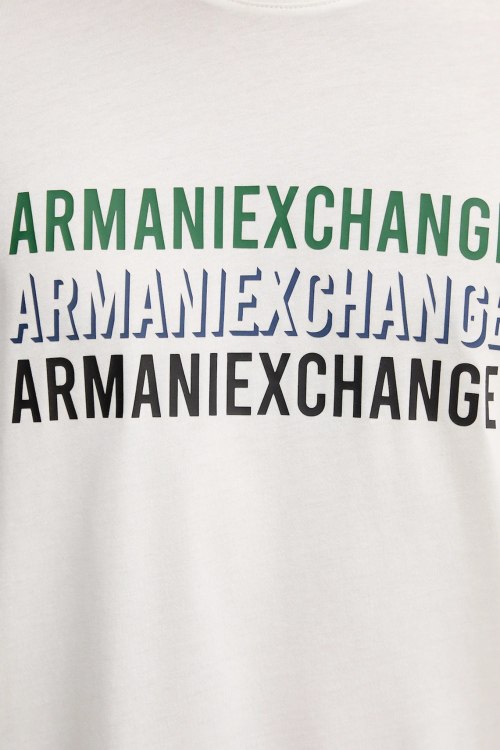 Детали: Мужская белая хлопковая футболка от Armani Exchange (Армани Эксчендж). Логотип на груди, круглый вырез горловины, короткий рукав, классическая длина