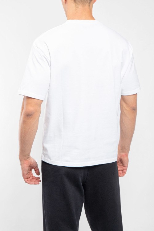 Мужская белая хлопковая футболка от Balenciaga (Баленсиага). Логотип на груди, круглый вырез горловины, короткий рукав, классическая длина.