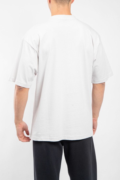 Мужская белая хлопковая футболка от Balenciaga (Баленсиага). Логотип на груди, круглый вырез горловины, короткий рукав, удлиненная длина.