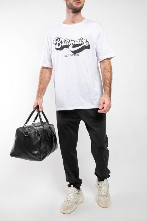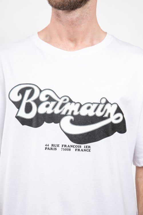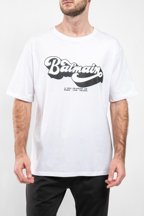 Детали: Мужская белая хлопковая футболка от Balmain (Бальман). Логотип на груди, круглый вырез горловины, короткий рукав, классическая длина