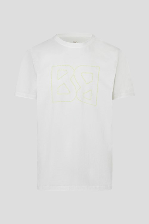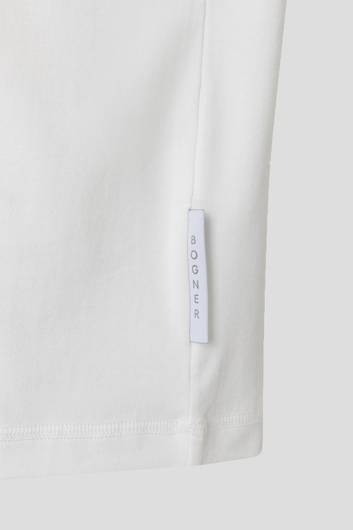 Детали: Мужская белая хлопковая футболка Roc от Bogner (Богнер). Логотип на груди, круглый вырез горловины, короткий рукав, классическая длина