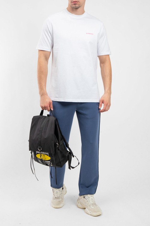 Мужская белая хлопковая футболка от Burberry (Бёрберри). Принт с логотипом на груди и на спине, круглый вырез горловины, короткий рукав, удлиненная длина. Замеры для размера: M; длина - 72 см; ПОГ - 56 см; ПОТ - 54,5 см; ПОБ - 55 см; длина по внутреннему шву рукава - 12 см; ширина рукава - 22,5 см.