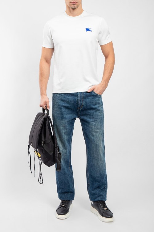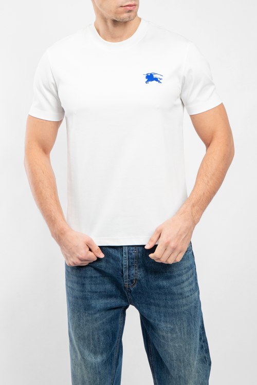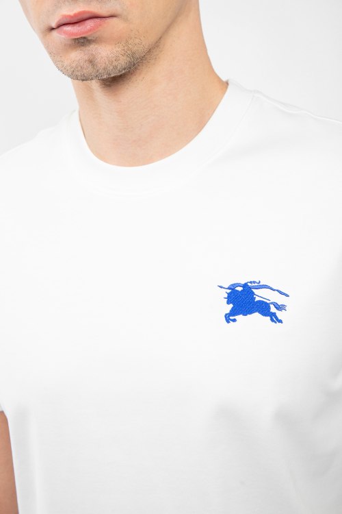 Мужская белая хлопковая футболка от Burberry (Бёрберри). Брендовая вышивка EKD на груди, круглый вырез горловины, короткий рукав, классическая длина.