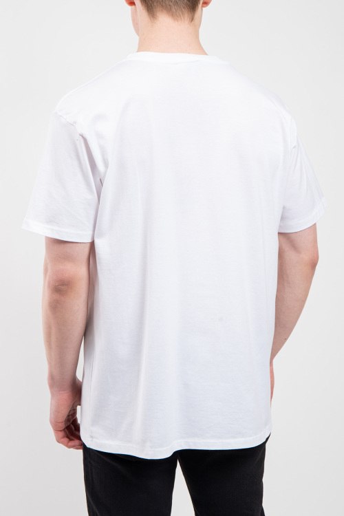 Мужская белая хлопковая футболка от Celine (Селин). Принт с логотипом на груди, круглый вырез горловины, короткий рукав, удлиненная длина, фасон oversize.