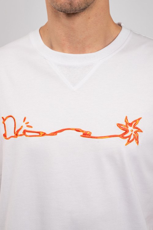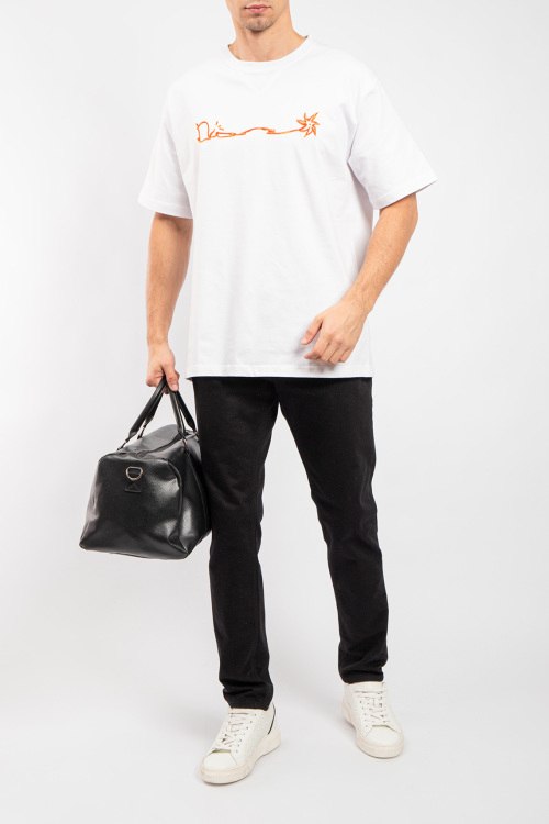 Мужская белая хлопковая футболка от Christian Dior (Кристиан Диор). Вышивка на груди, круглый вырез горловины, короткий рукав, классическая длина.