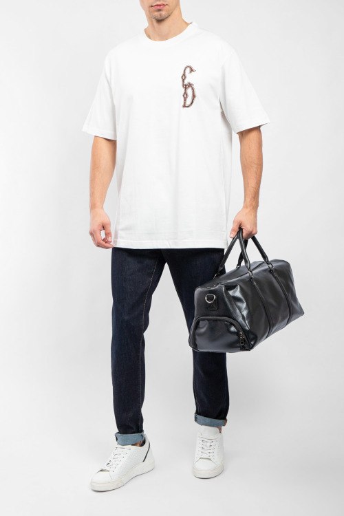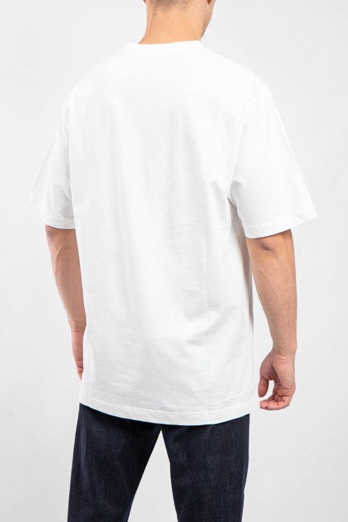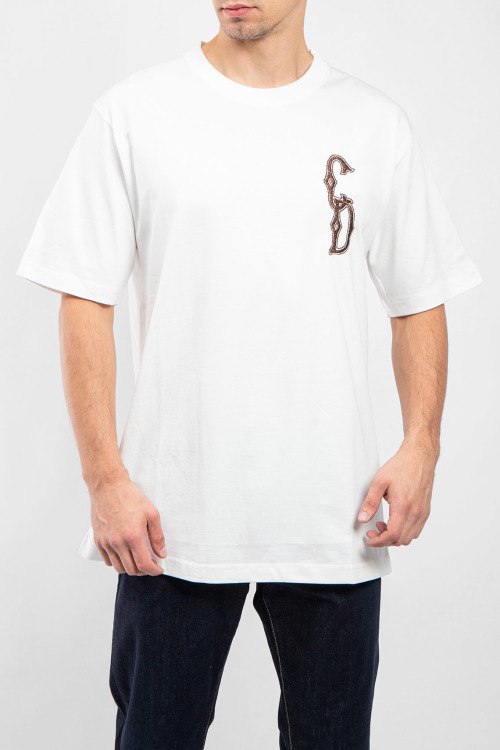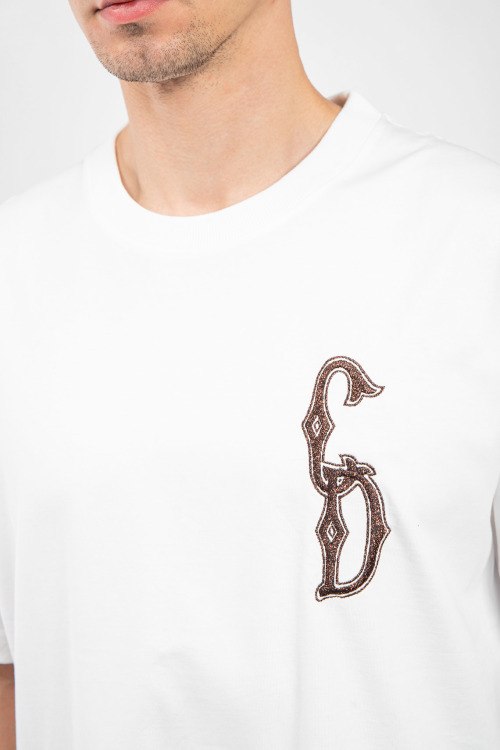 Мужская белая хлопковая футболка от Christian Dior (Кристиан Диор). Вышитый логотип на груди, круглый вырез горловины, короткий рукав, удлиненная длина.