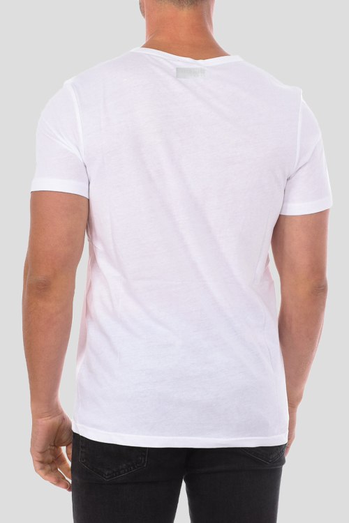 Детали: Мужская белая хлопковая футболка от Bikkembergs (Биккембергс). Принт с логотипом на груди, круглый вырез в горловины, короткий рукав, классическая длина
