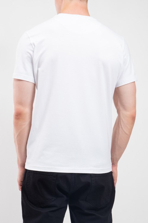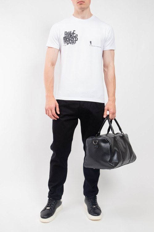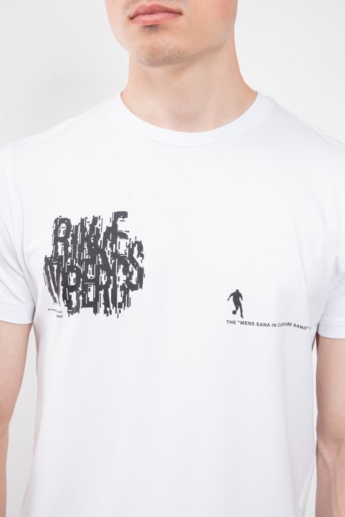 Детали: Мужская белая хлопковая футболка от Bikkembergs (Биккембергс). Принт с логотипом на груди, круглый вырез горловины, короткий рукав, классическая длина