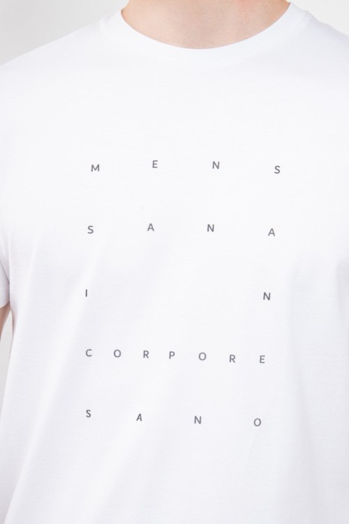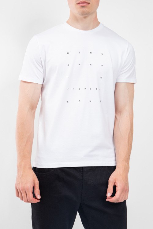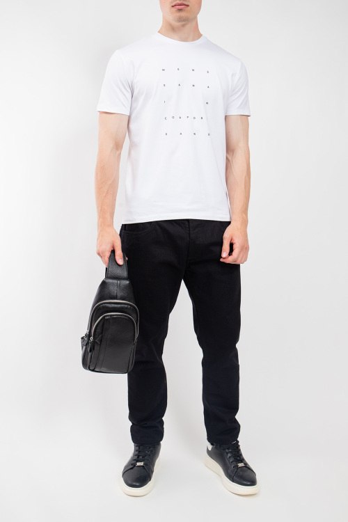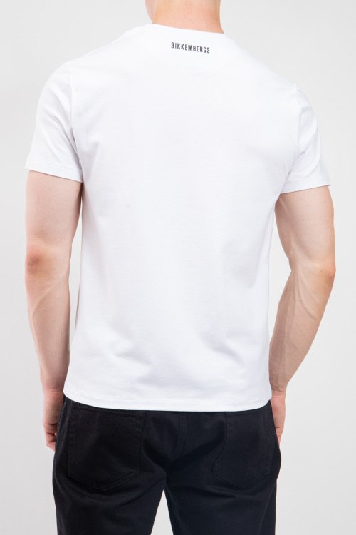 Детали: Мужская белая хлопковая футболка от Bikkembergs (Биккембергс). Принт на груди, круглый вырез горловины, короткий рукав, классическая длина