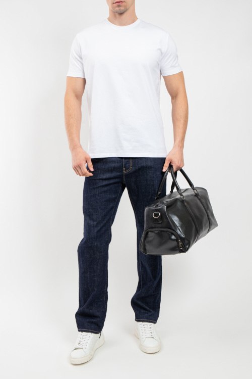 Мужская белая футболка из хлопкового микса от Bikkembergs (Биккембергс). Классическая длина, круглый вырез горловины, короткие рукава, вышитый логотип бренда на груди в тон изделия.