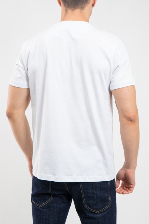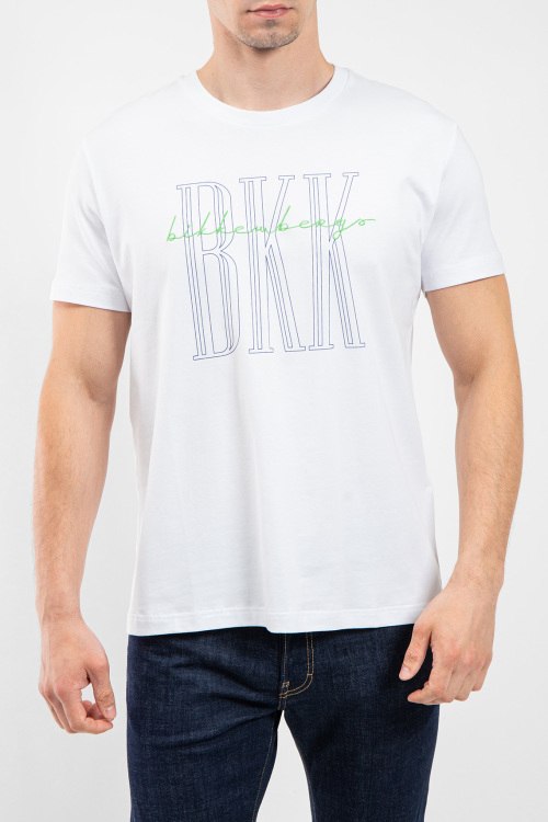 Мужская белая футболка из хлопка от Bikkembergs (Биккембергс). Классическая длина, круглый вырез горловины. короткие рукава, брендированный принт с вышитым логотипом на груди.
