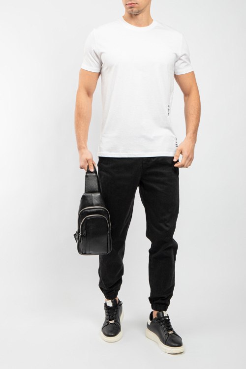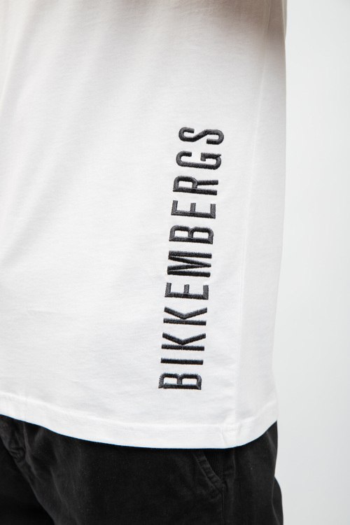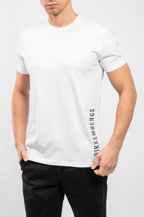 Мужская белая хлопковая футболка от Bikkembergs (Биккембергс). Вышитый логотип сбоку, круглый вырез горловины, короткий рукав, классическая длина.