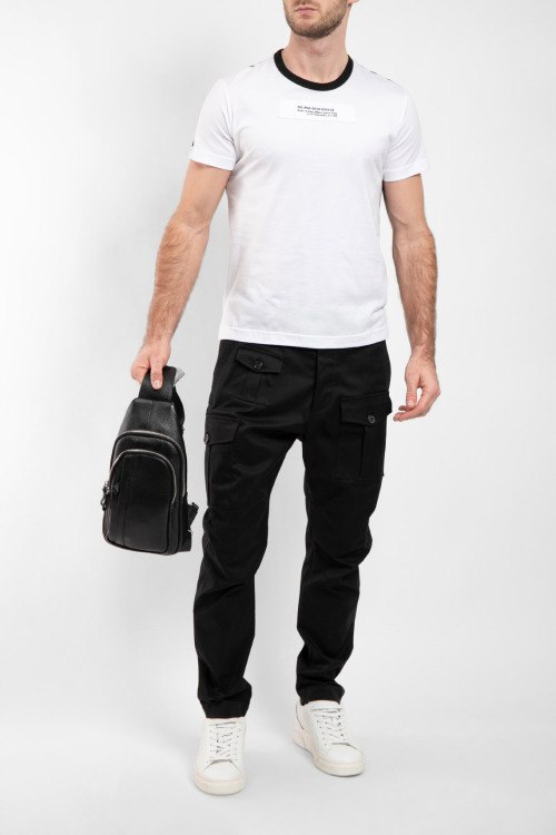 Детали: Мужская белая хлопковая футболка от Dolce & Gabbana (Дольче энд Габбана). Нашивка на груди, принт на спине, круглый вырез горловины, короткий рукав, классическая длина