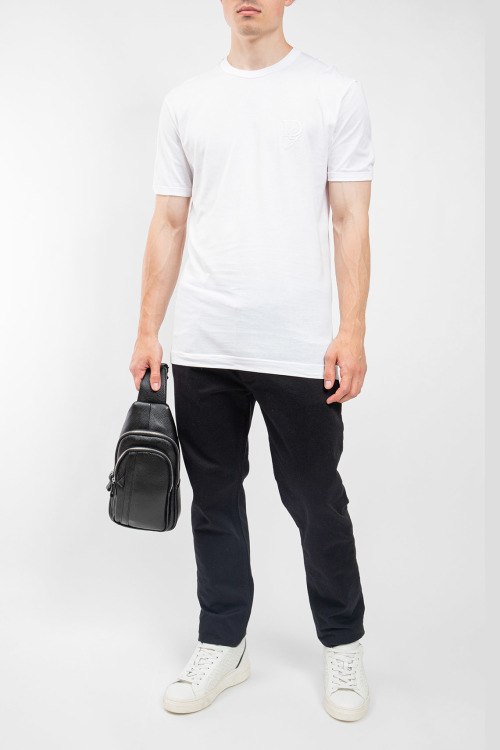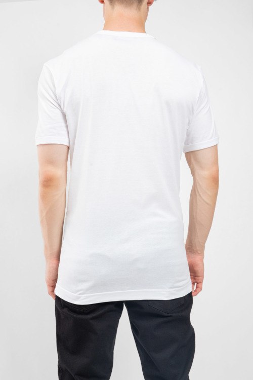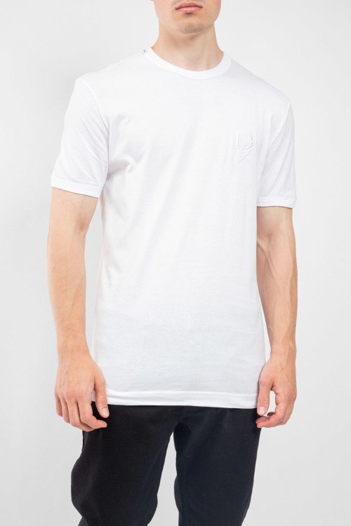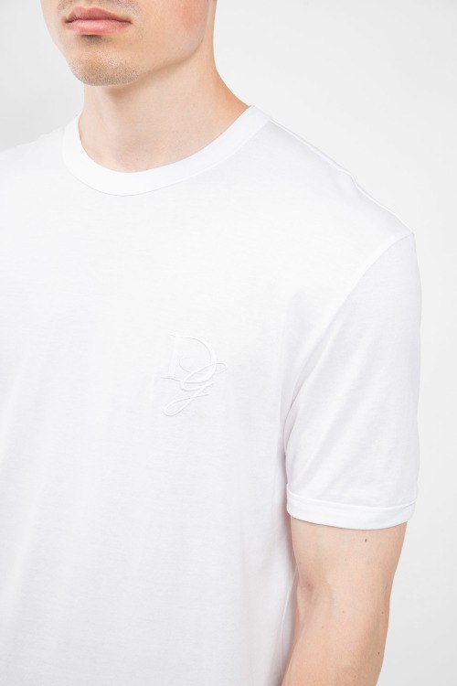 Мужская белая хлопковая футболка от Dolce & Gabbana (Дольче энд Габбана). Вышитый логотип на груди, круглый вырез горловины с нашивкой логотипа, короткий рукав, классическая длина.