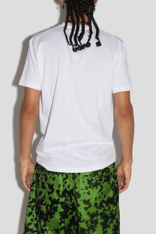 Детали: Мужская белая футболка California из хлопка от Dsquared2 (Дискваред). Круглый вырез горловины, короткие рукава, принт с логотипом бренда