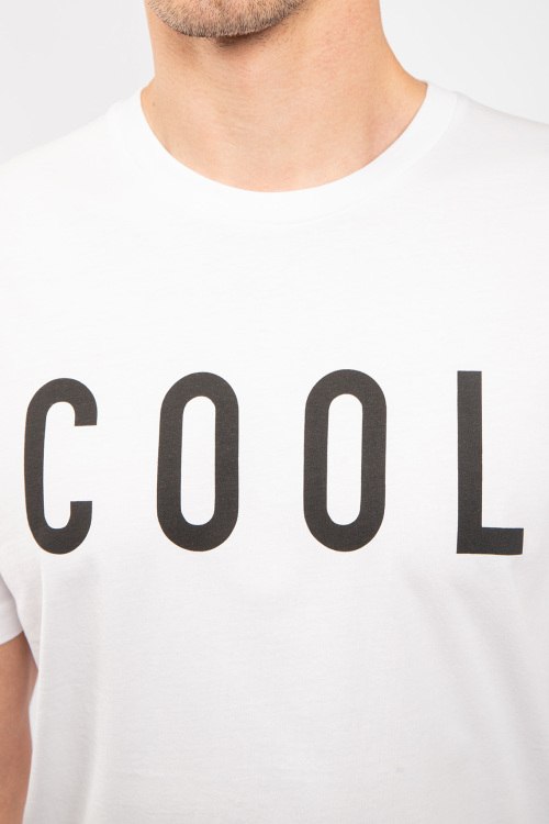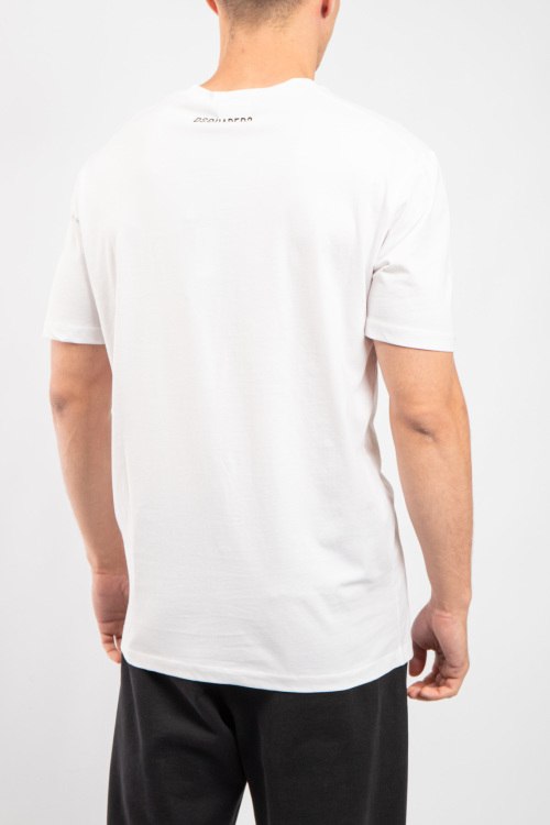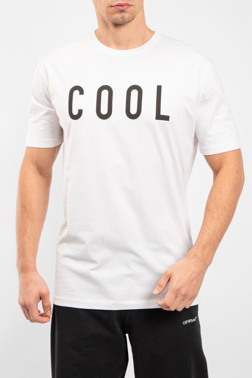 Мужская белая хлопковая футболка Cool от Dsquared2 (Дискваред). Надпись на груди, круглый вырез горловины, короткий рукав, классическая длина.