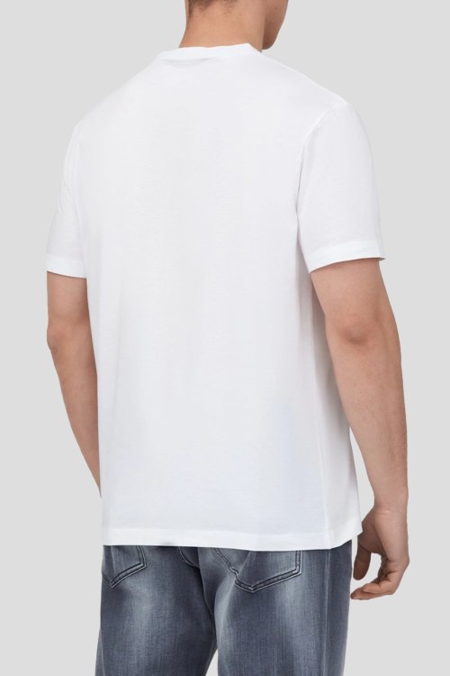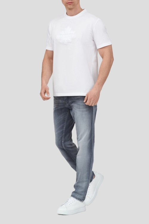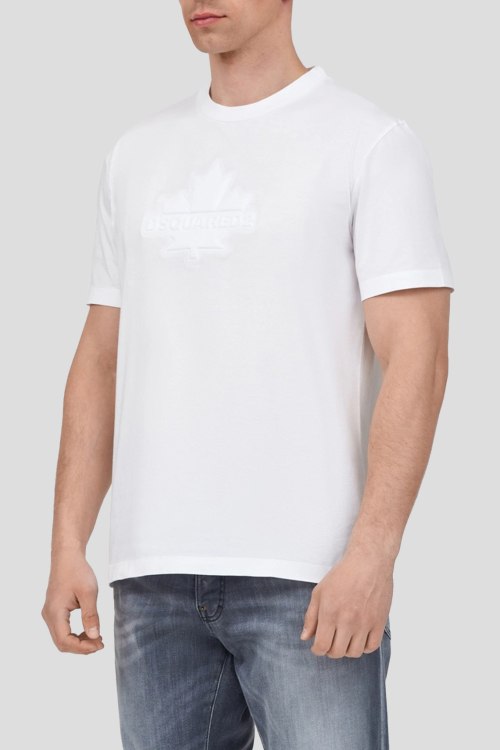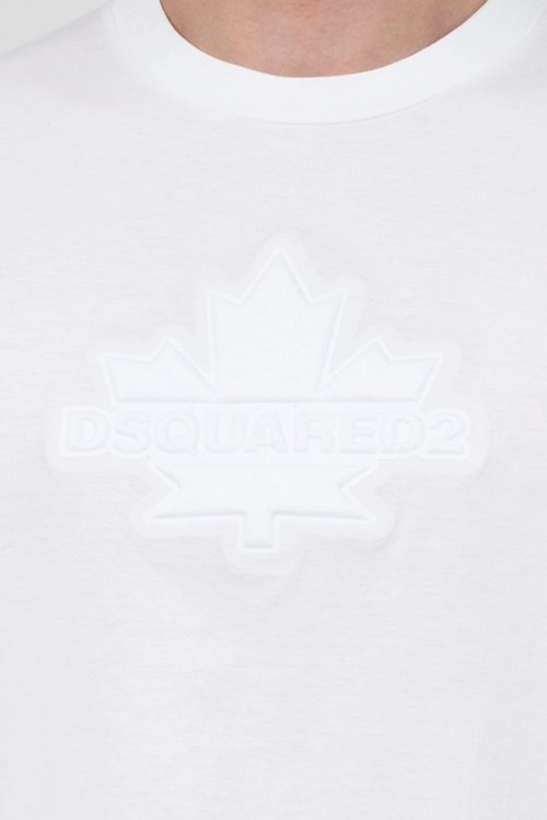 Детали: Мужская белая хлопковая футболка от Dsquared2 (Дискваред). Логотип на груди, круглый вырез горловины, короткий рукав, классическая длина