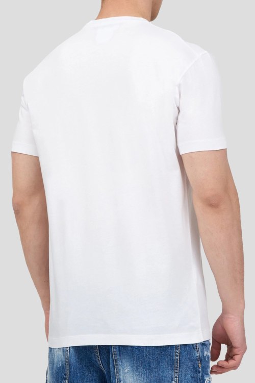 Детали: Мужская белая хлопковая футболка DSQ от Dsquared2 (Дискваред). Принт с логотипом, круглый вырез горловины, короткий рукав, классическая длина
