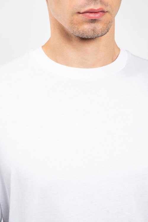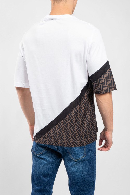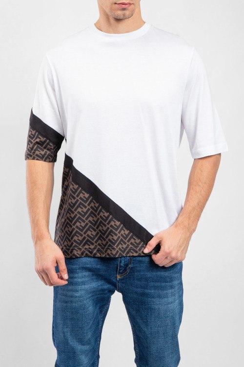 Мужская белая хлопковая футболка от Fendi (Фенди). Диагональный логотип FF, круглый вырез горловины, короткий рукав, классическая длина.