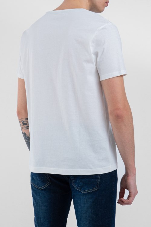Мужская белая футболка из хлопка от Fred Mello (Фред Мелло). Классическая длина, короткие рукава, круглый вырез горловины, короткие рукава, ровный низ изделия, декор: спереди принт с логотипом бренда.