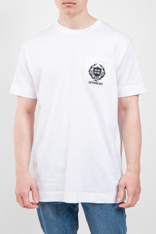 Мужская белая футболка из хлопка от Givenchy (Живанши). Классическая длина, круглый вырез горловины, короткие рукава, нагрудный карман с вышитым логотипом бренда.