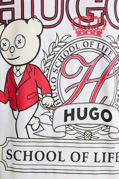 Детали: Мужская белая хлопковая футболка Daporoni от Hugo by Hugo Boss (Хуго бай Хуго Босс). Принт на груди, круглый вырез горловины, короткий рукав, классическая длина