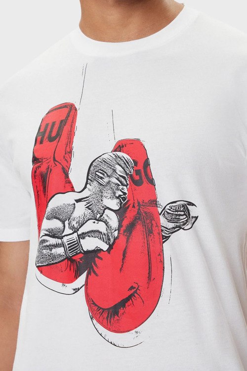 Детали: Мужская белая хлопковая футболка Diboxer от Hugo by Hugo Boss (Хуго бай Хуго Босс). Принт на груди, круглый вырез горловины, короткий рукав, классическая длина