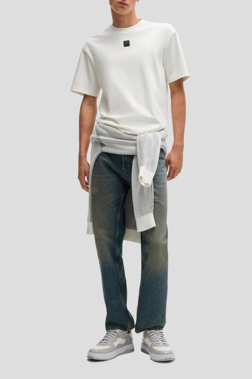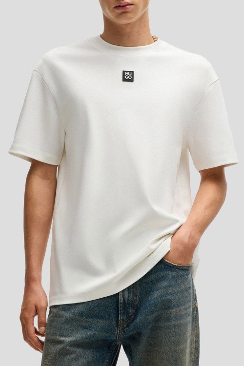 Детали: Мужская белая хлопковая футболка Dalile от Hugo by Hugo Boss (Хуго бай Хуго Босс). Логотип на груди, круглый вырез горловины, короткий рукав, классическая длина