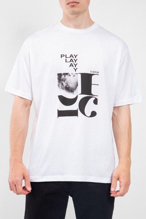 Детали: Мужская белая хлопковая футболка от Ice Play (Айс Плей). Принт с логотипом на груди, круглый вырез горловины, короткий рукав, классическая длина