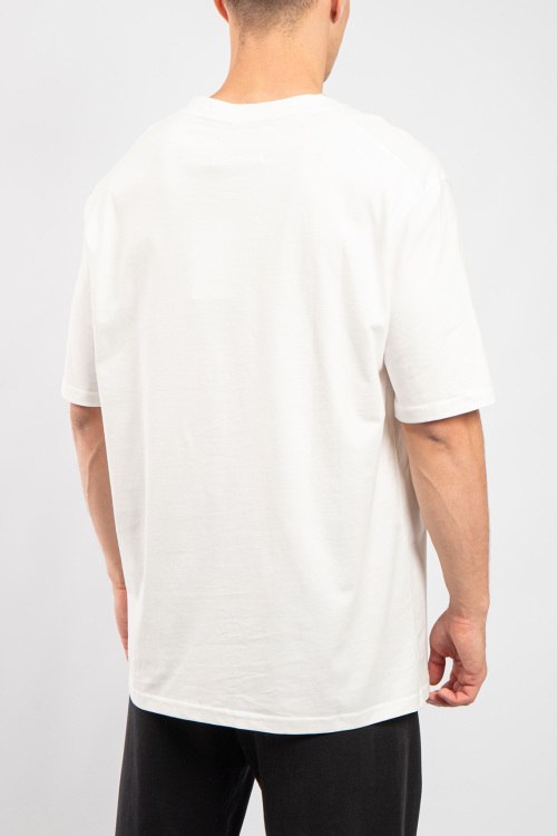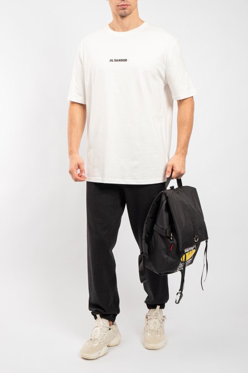 Мужская белая хлопковая футболка от Jil Sander (Джил Сандер). Фасон oversize, логотип на груди, круглый вырез горловины, короткий рукав, удлиненная длина.