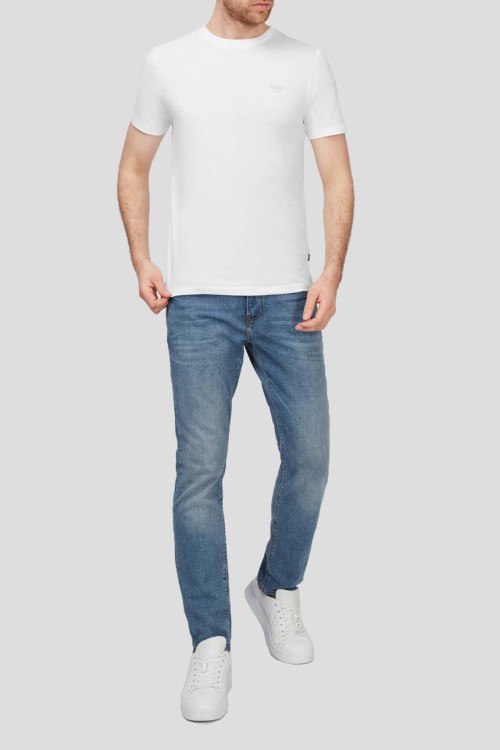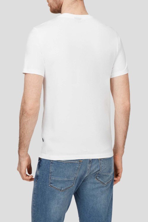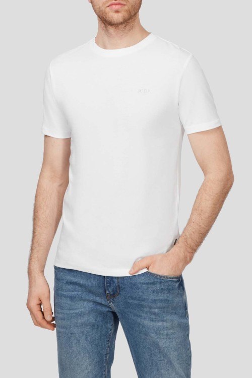 Детали: Мужская белая футболка из хлопка от Joop! (Йооп!). Классическая длина, круглый вырез горловины, короткие рукава, логотип бренда на груди. Измерения: длина рукава: короткий, 22,5 см, обхват груди: 102 см, обхват талии: 96 см, длина изделия по среднему шву спинки от горловины: 67,5 см. Размер на модели: М. Рост модели: 190 см