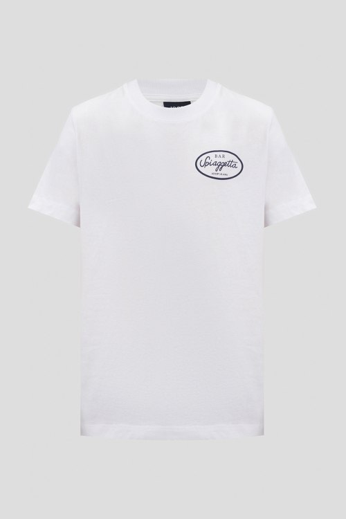 Детали: Мужская белая футболка их хлопка от Joop! (Йооп!). Прямой крой, круглый вырез горловины, контрастный принт на груди и спине. Замеры: длина рукава: короткий, для размера М - 22,5 см, обхват груди: для размера М - 116 см, обхват талии: для размера М - 110 см, длина изделия по среднему шву спинки от горловины: для размера М - 67 см