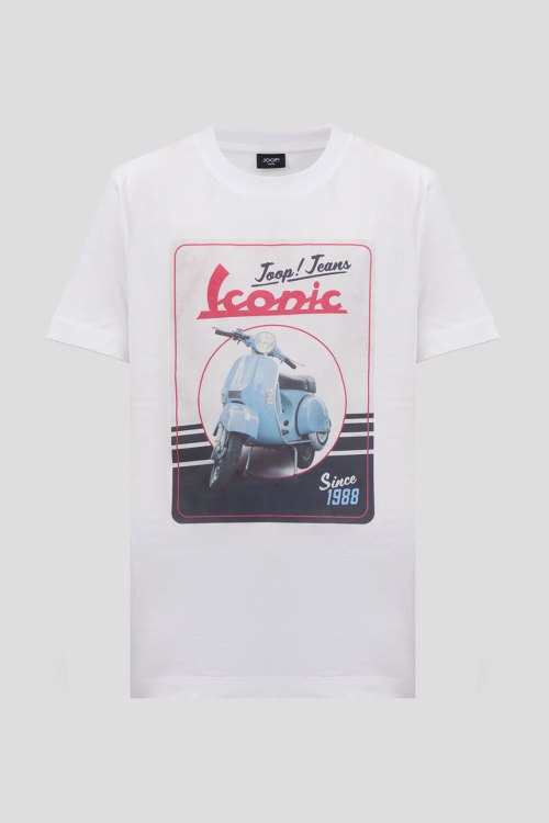 Детали: Мужская белая футболка из хлопка от Joop! (Йооп!). Прямой фасон, круглый вырез горловины, принт спереди. Замеры: длина рукава: короткий, для размера М - 22 см, обхват груди: для размера М - 108 см, обхват талии: для размера М - 104 см, длина изделия по среднему шву спинки от горловины: для размера М - 69 см