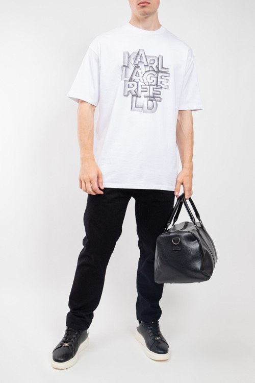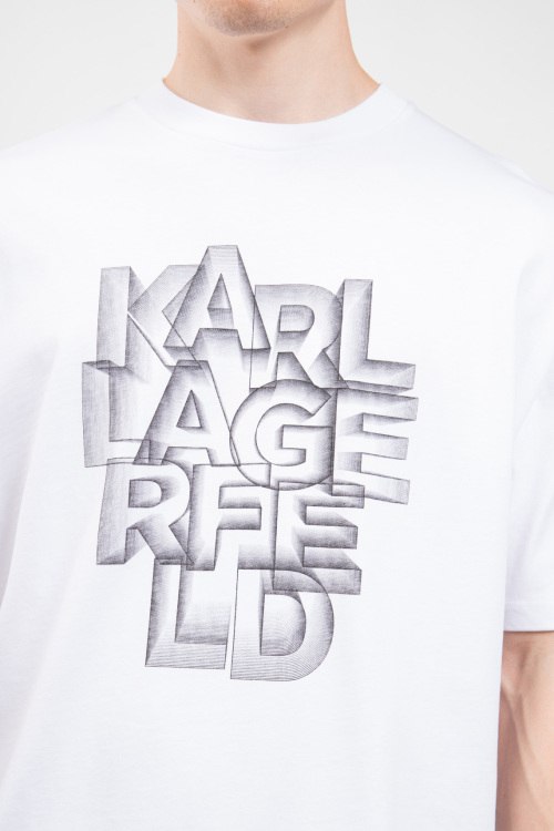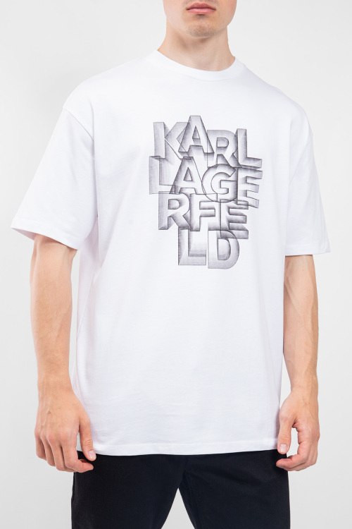 Детали: Мужская белая хлопковая футболка от Karl Lagerfeld (Карл Лагерфельд). Принт с логотипом на груди, круглый вырез горловины, короткий рукав, классическая длина