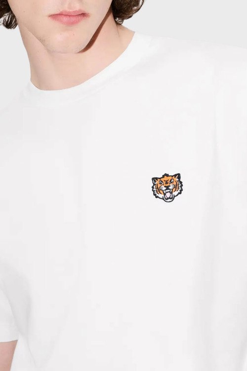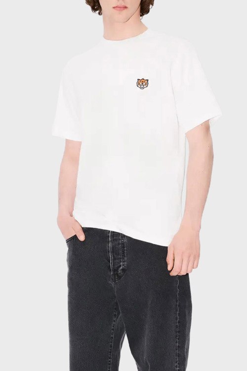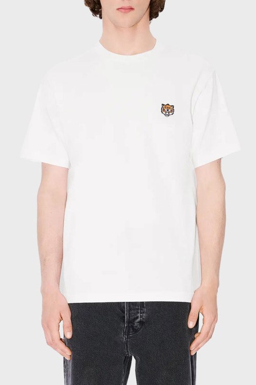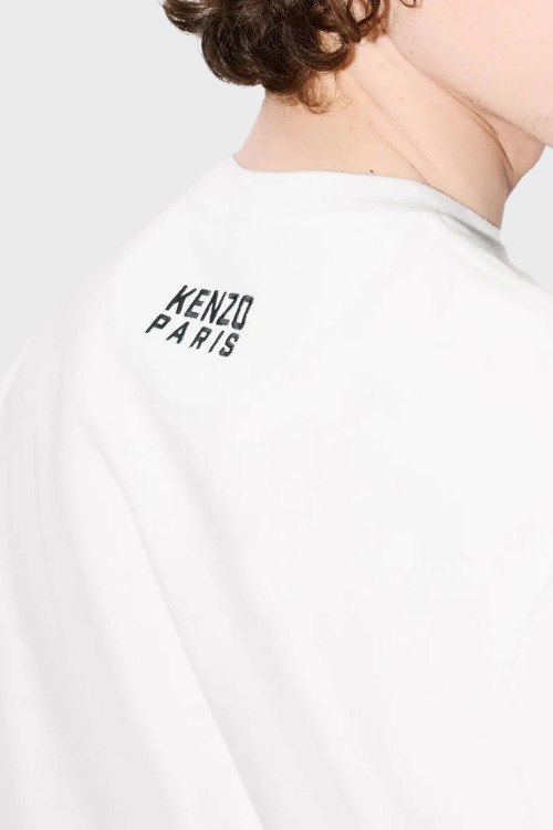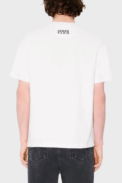 Детали: Мужская белая футболка из хлопка от Kenzo (Кензо). Классическая длина, круглый вырез горловины, короткие рукава, вышитый логотип бренда на груди, брендированный принт на спине