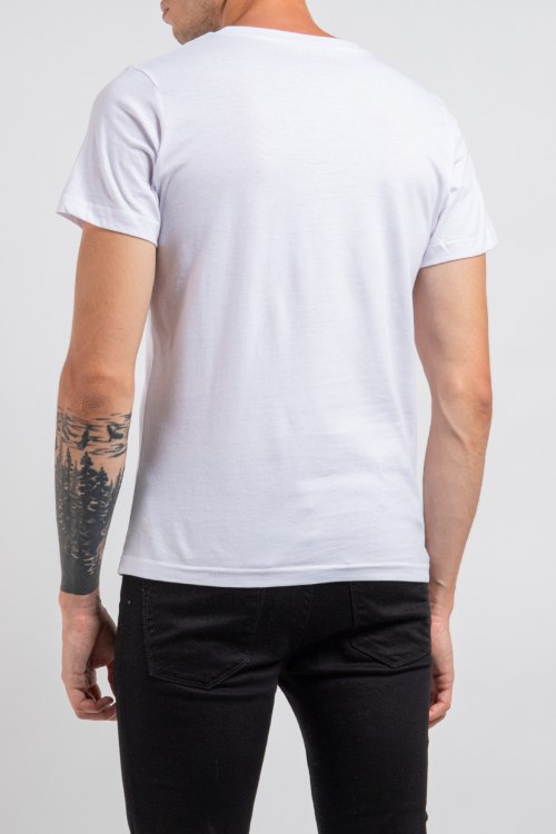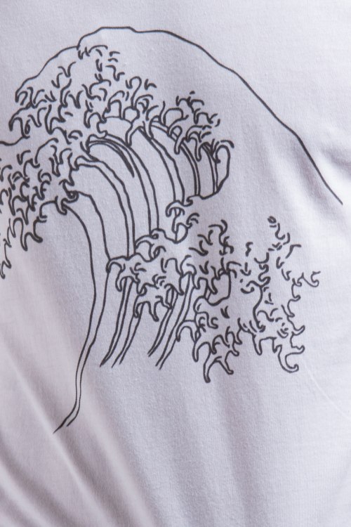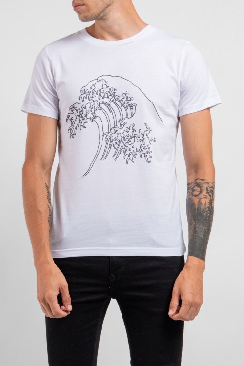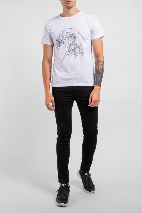 Мужская белая футболка из хлопка от Ko Samui (Ко Самуи). Классическая длина, круглый вырез горловины, короткие рукава, спереди принт Wave.