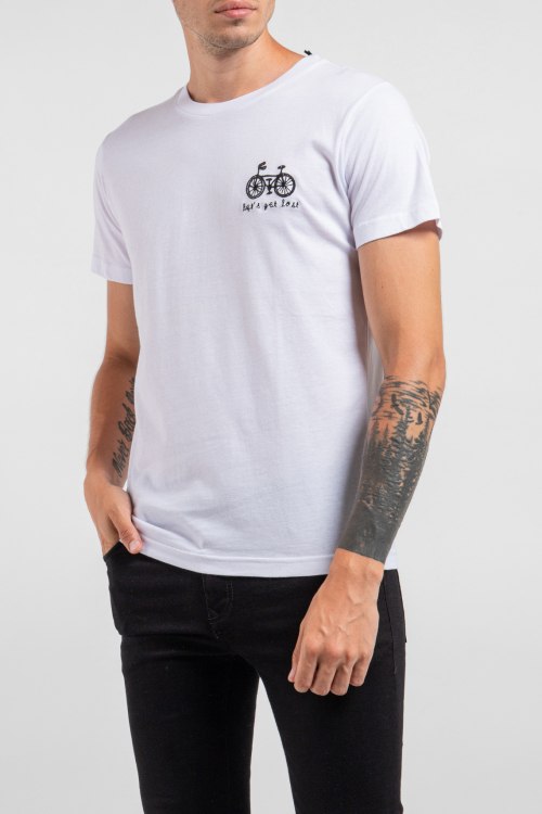 Мужская белая футболка из хлопка от Ko Samui (Ко Самуи). Классическая длина, круглый вырез горловины, короткие рукава, на груди вышивка.