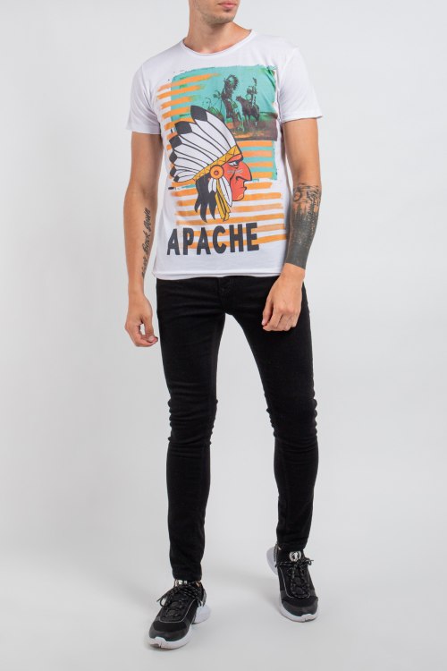 Мужская белая футболка из хлопка от Ko Samui (Ко Самуи). Классическая длина, короткие рукава, круглый вырез горловины, спереди принт Apache.