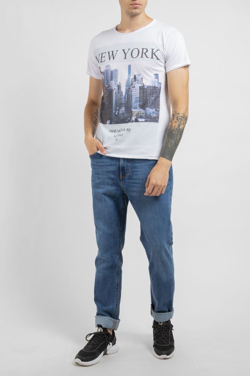 Мужская белая футболка из хлопка от Ko Samui (Ко Самуи). Спереди принт New York, круглый вырез горловины, короткие рукава.