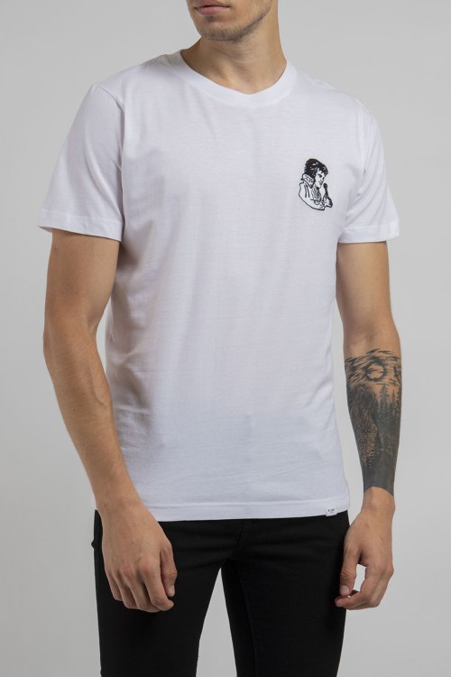 Мужская белая футболка из хлопка от Ko Samui (Ко Самуи). Классическая длина, короткие рукава, круглый вырез горловины, на груди вышивка Elvis.