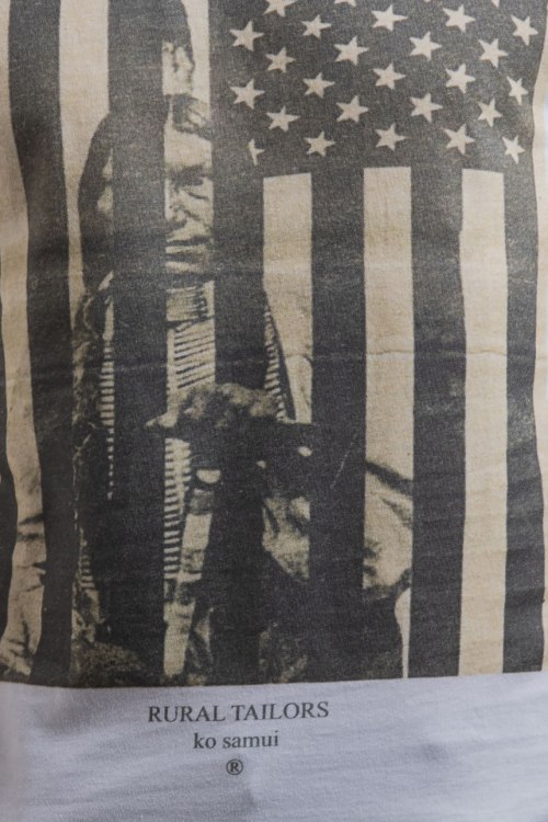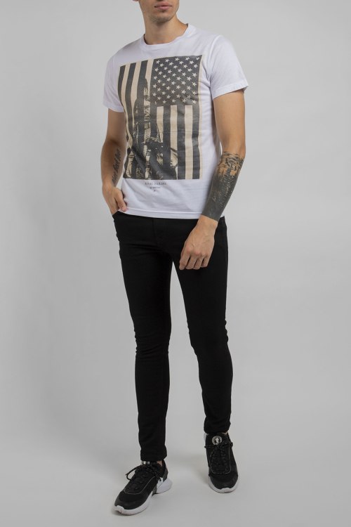Детали: Мужская белая футболка из хлопка от Ko Samui (Ко Самуи). Классическая длина, короткие рукава, круглый вырез горловины, спереди принт Flag