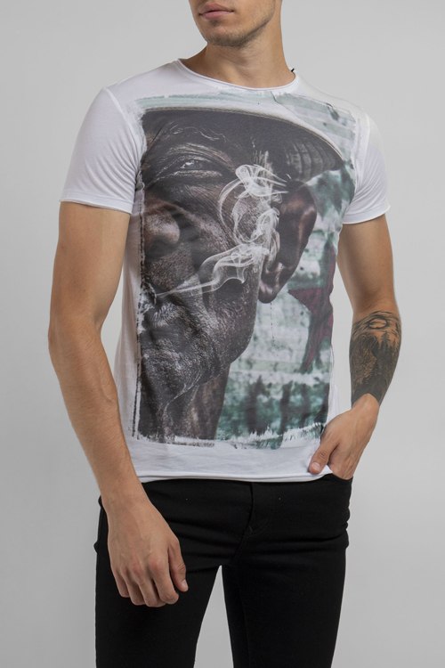 Мужская белая футболка из хлопка от Ko Samui (Ко Самуи). Классическая длина, короткие рукава, круглый вырез горловины, спереди принт.