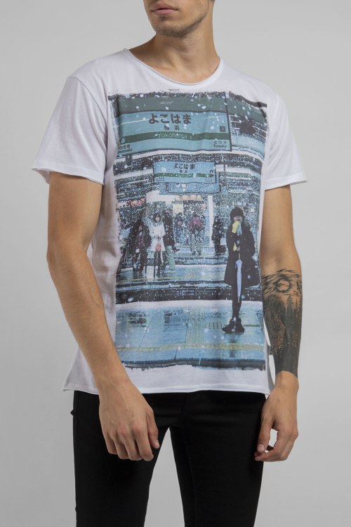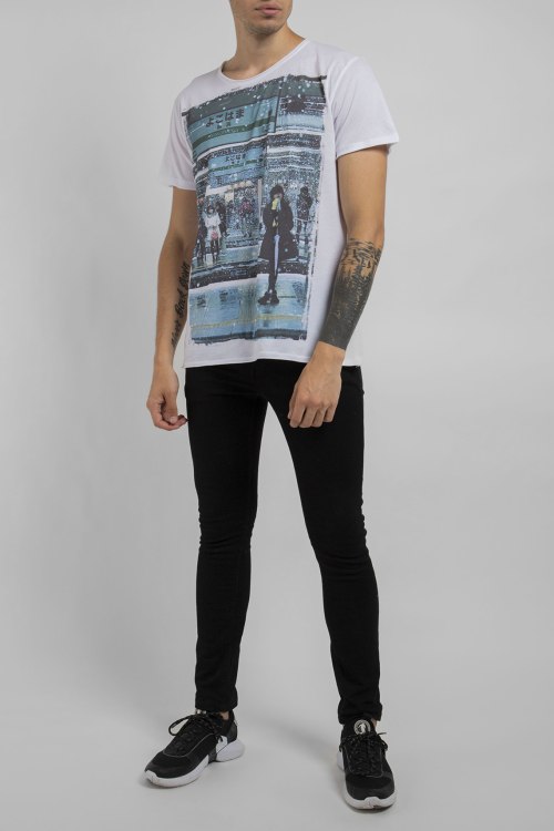 Мужская белая футболка из хлопка от Ko Samui (Ко Самуи). Классическая длина, короткие рукава, курглый вырез горловины, спереди принт.