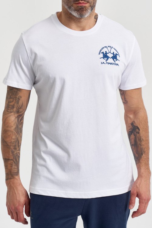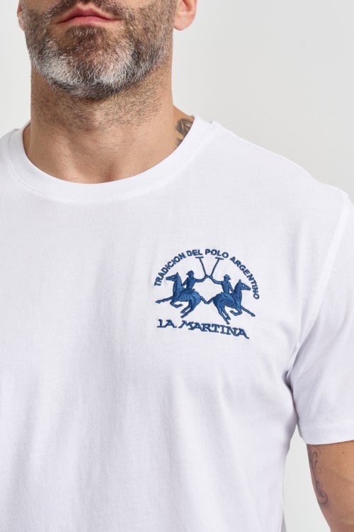 Детали: Мужская белая хлопковая футболка от La Martina (Ла Мартина). Логотип на груди, круглый вырез горловины, короткий рукав, классическая длина. Параметры модели: 103 см - 87 см - 99 см. Рост - 182 см. Размер на фото - L