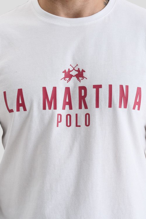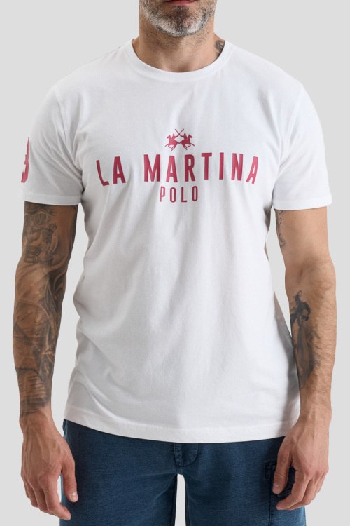 Детали: Мужская белая хлопковая футболка от La Martina (Ла Мартина). Логотип на груди, круглый вырез горловины, короткий рукав, классическая длина