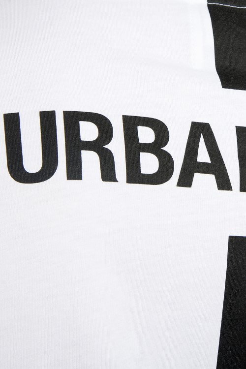 Футболка из натурального хлопка. Однотонная модель, свободный крой, круглый вырез под горло. Декорирована контрастным принтом спереди и сзади изделия.
