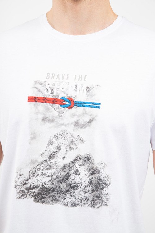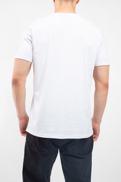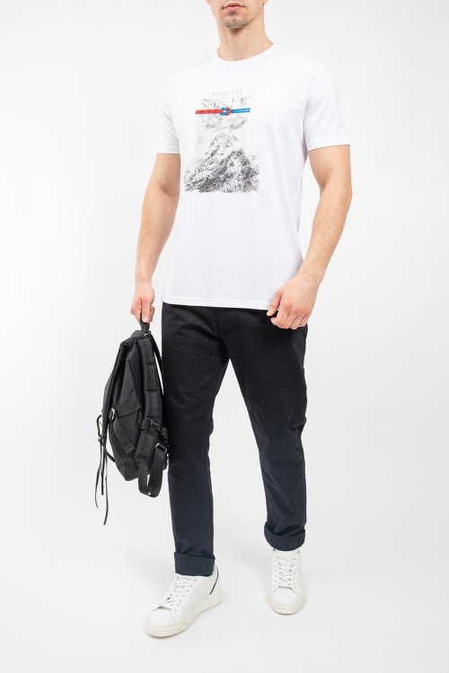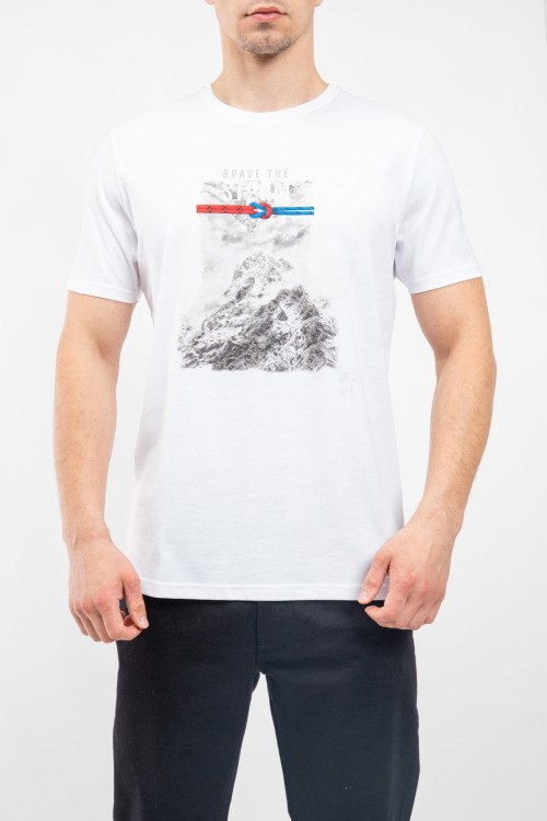Мужская белая футболка из хлопка от Marvelis (Марвелис). Классическая длина, круглый вырез горловины, короткие рукава, декорирована принтом спереди.