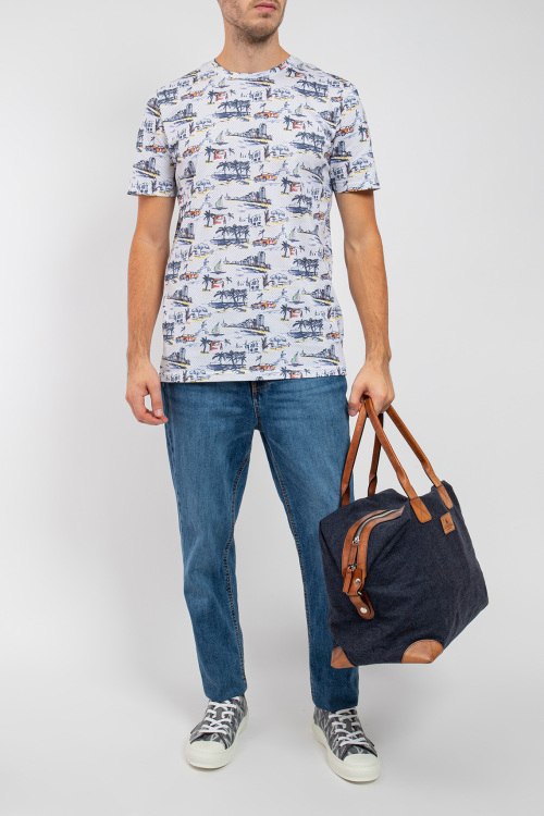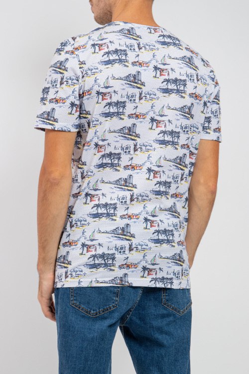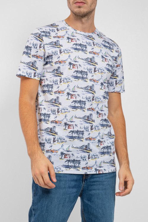 Мужская белая хлопковая футболка от Marvelis (Марвелис). Принт по всей поверхности, круглый вырез горловины, короткий рукав, классическая длина. Замеры для размера L: длина 77 см, полу обхват груди 55 см, длина рукава 25 см.